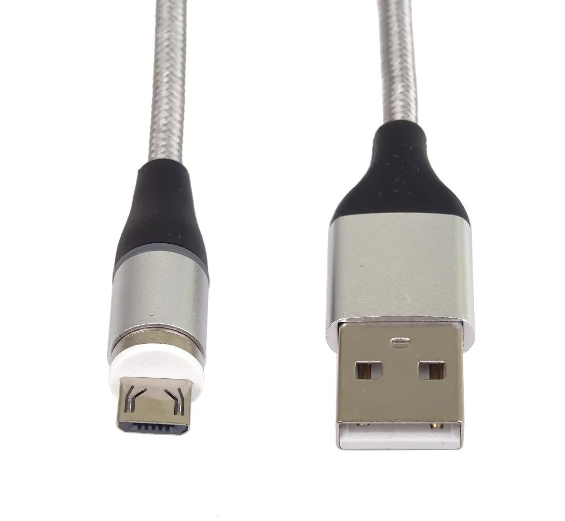 PremiumCord Magnetický micro USB a USB-C nabíjecí a datový kabel 1m, stříbrný