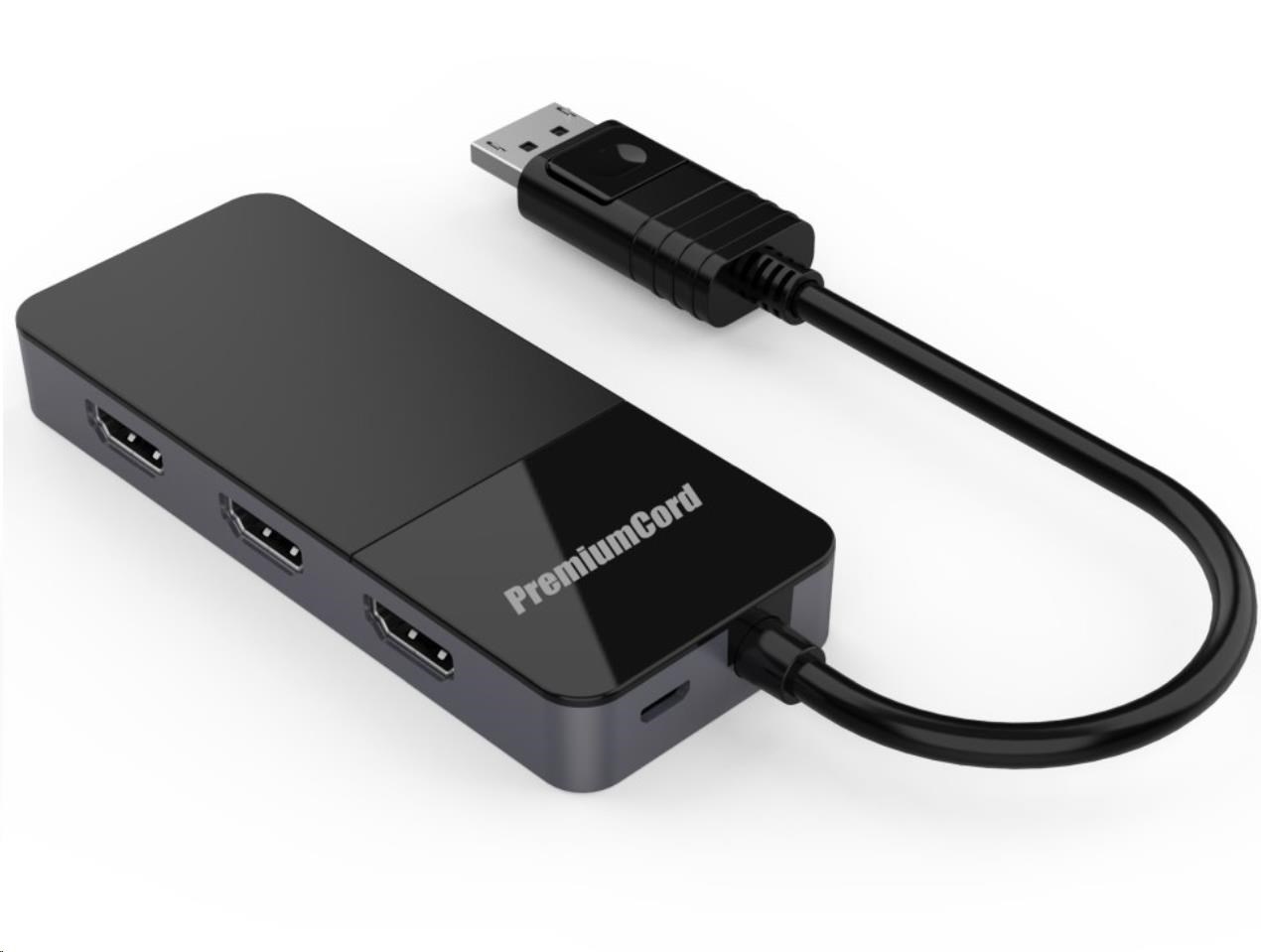 PREMIUMCORD MST adapter DisplayPort 1.4 na 3x HDMI2.0 monitory 4K@60Hz, extended + mirror + duplicate režimy