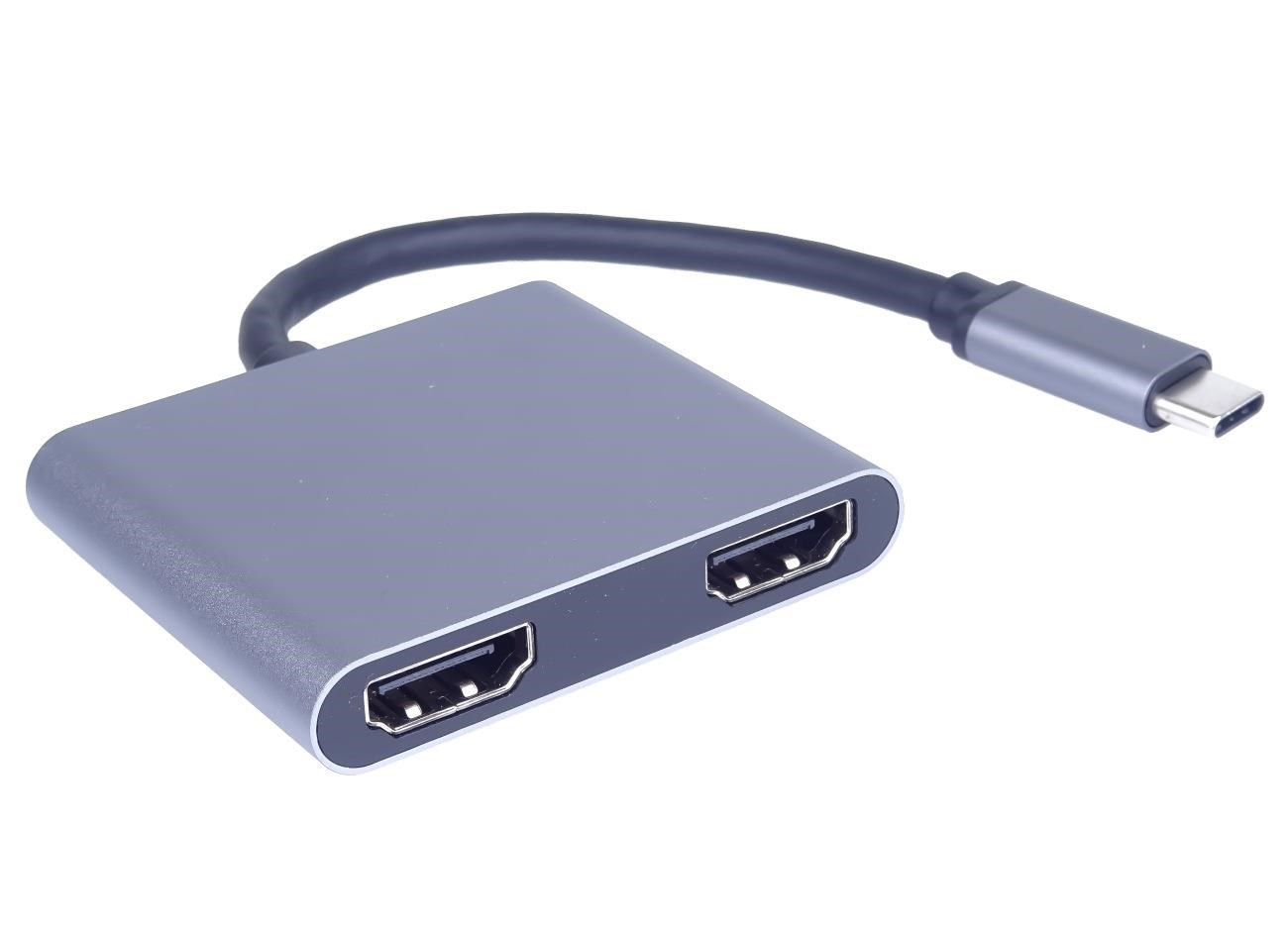 Tento adaptér umožňuje vysoce kvalitní převod videa a zvuku z USB-C konektoru na dva HDMI konektory pro monitory/TV/projektory. Funguje jako externí grafická karta s dvěma výstupy HDMI.