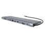 PREMIUMCORD Dokovací stanice USB-C 10v1, 1xHDMI, 1xVGA, 2xUSB-C, 3xUSB, 1xRJ45, čtečka SD karet, šedá