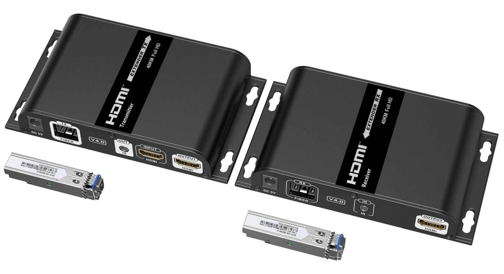 PremiumCord Optický HDMI extender FULL HD 1080p až na 40km Přenášejte obrazové a zvukové signály HDMI na vzdálenost až 40 km pomocí optických kabelů. Kromě toho můžete přenášet signály dálkového ovládání IR do zdrojového zařízení. Zdrojové zařízení tak můžete ovládat z přijímače. Pomocí tohoto vysoce výkonného video systému můžete napájet až 16 přijímačů na vzdálenost až 5 km pomocí dalšího optického přepínače. Tři LED diody na přední straně vysílače a přijímače vás vždy informují o stavu zařízení. Tato sada se skládá z modulu vysílače a přijímače a je zvláště vhodná pro přenos signálů HDMI na velké vzdálenosti. Ideální pro spojení mezi budovami nebo velkými průmyslovými komplexy. - Optický konektor LC - Optické vlákno: SMF - Vlnová délka: 1310/1550nm - Připojení HDMI: Typ A, zásuvka - Připojení optickými vlákny: LC Simplex, zásuvka - Součástí setu jsou dva špičkové SFP moduly pro připojení LC optického kabelu - Přenos: 150 Mb / s - Přenosová vzdálenost: až 40 km - Nejvyšší možné rozlišení: Full HD, 1080p / 60 Hz - HDMI rozlišení vstupu: 480i při 60 Hz, 480p při 60 Hz, 576i při 50 Hz, 576p při 50 Hz, 720p při 50/60 Hz, 1080i při 50/60 Hz, 1080p při 50/60 Hz - Výstupní rozlišení HDMI: 1080p při 60 Hz, 720p, 576p, 480p - Verze HDMI: 1.3 - Verze HDCP: 1.4 - LED indikátor funkce - TMDS šířka pásma: 10,2 Gpbs - Vlnová délka vysílače: 1310 nm (TX), 1550 nm (RX) - Vlnová délka přijímače: 1550 nm (RX), 1310 nm (TX) - Vstupní a výstupní signál DDC: 5 Vp-p (TTL) - Vzdálené směrování IR signálu: 20 - 60 kHz - Odolný proti přepětí - Provozní teplota: -20 až +60 ° C - Provozní vlhkost: 0-90% (nekondenzující) - Provozní napětí: 5 V / DC / 2 A - Spotřeba energie: Vysílací modul: <3 W / Přijímací modul: <3W - Rozměry: D 138 x Š 81,5 x V 24 mm - Materiál: hliníkový kryt - Černá barva - Hmotnost: Vysílací modul: 180 g / Přijímací modul: 180 g - Výstupní signál z vysílače lze přes optický switch připojit až na 16 přijímačů a zobrazit na 16 monitorů Obsah balení 1x modul vysílače 1x přijímací modul 2x IR propojovací kabely 2x napájecí zdroje 1x Manuální.