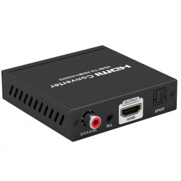 - Vyvede z HDMI audio signál na konektory: stereo jack, Digitální audio RCA CINCH nebo digitální optické TOSLINK