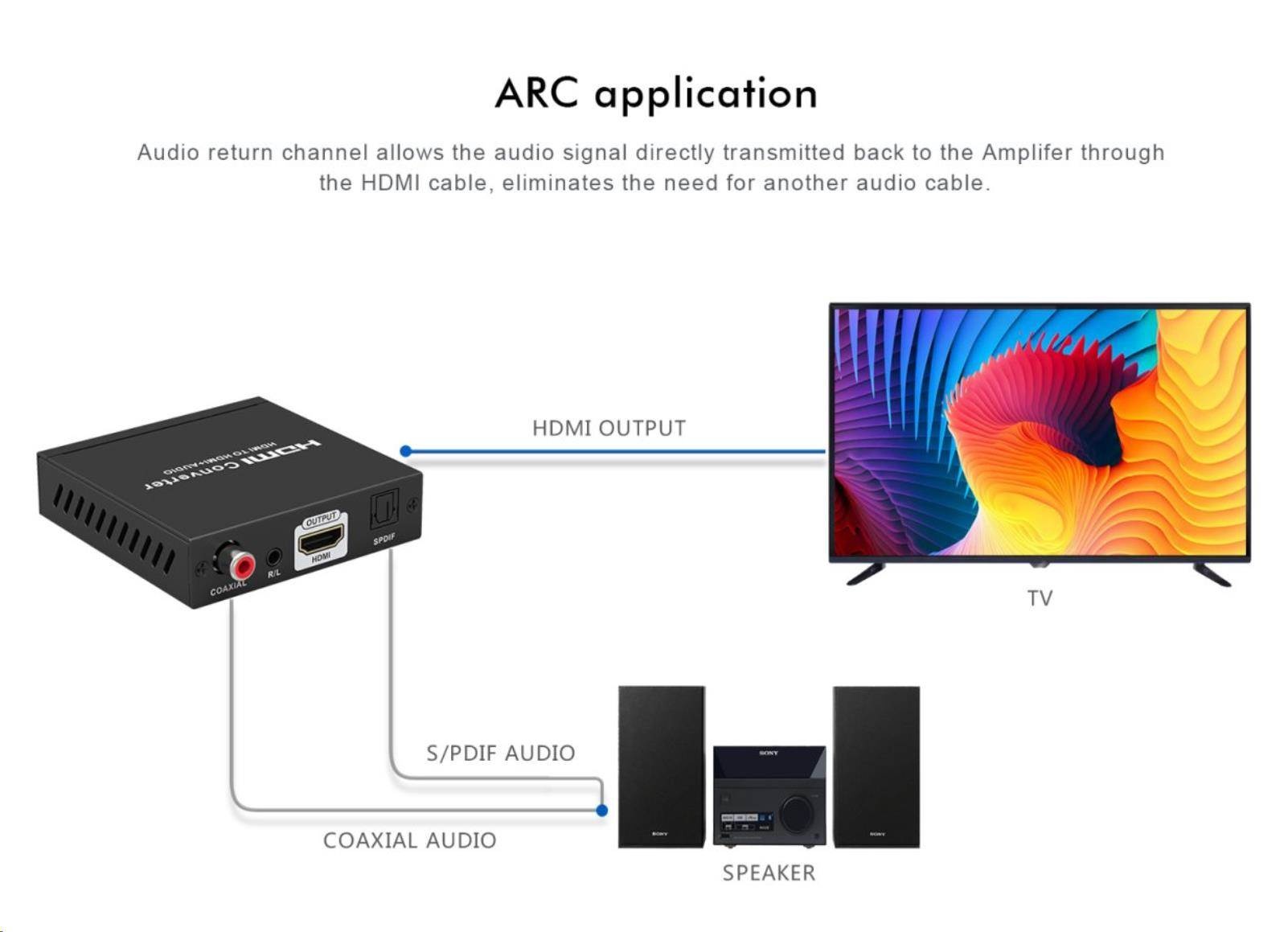 Umožní oddělit audio z HDMI2.0 vstupu na analogové / digitální audio, které je vyvedeno zvlášť na konektory: stereo jack, Digitální audio RCA CINCH nebo digitální optické TOSLINK (SPDIF)