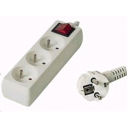 PREMIUMCORD Prodlužovací přívod 230V 10m, 3 zásuvky + vypínač, bílá