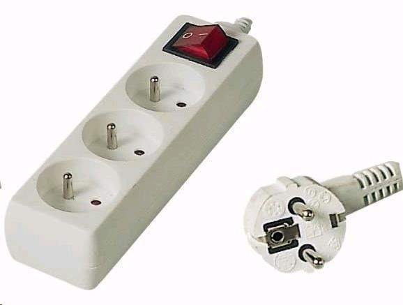 PREMIUMCORD Prodlužovací přívod 230V 2m, 3 zásuvky + vypínač, bílá
