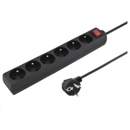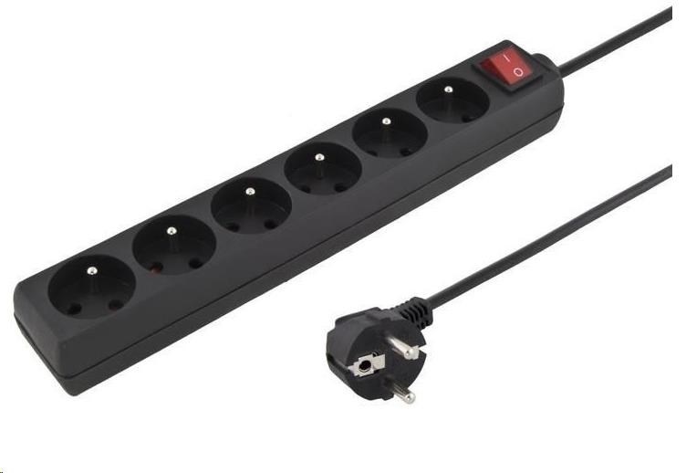PREMIUMCORD Prodlužovací přívod 230V 3m 6 zásuvek + vypínač, černý