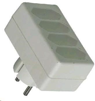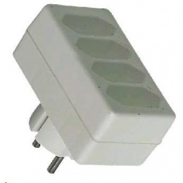 Rozbočka 230V - bílá - 230V, 4x2,5A max - baleno po 1ks - závěs s EAN kodem - 1x kulatá zástrčka - 4x plochá zásuvka.