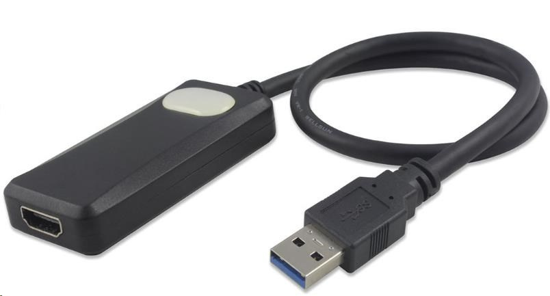 Tento adaptér umožní přidat další display k počítači nebo notebooku prostřednictvím USB 3.0 portu. - Video výstup: HDMI Female Connector - Vstup : USB3.0 - Podporuje rozlišení FULL HD 1080p/60Hz - Podporuje následující rozlišení HDMI: 640x480,720x480,768x576,800x600,1024x768,1280x720,1280x1024,1360x768, 1366x768, 1440x900,1600x1200,1680x1050,1920x1080 - Umožňuje vytvořit druhou obrazovku, zobrazení v ve dvou modech: 1) rozšíření obrazu na dvě obrazovky 2) duplikování jednoho obrazu na dvě obrazovky - Použitý chipset: FL2000 - Podporuje všechny Media přehrávače - Podporuje barvy: 16Bits and 32Bits - USB3.0 port Plug & Play - Délka kabelu: 20cm Podporuje: Microsoft® Win7 (32/64bit), Win8 (32/64bit), Win10(32/64bit) Mac OS 10.11 a vyšší Zařízení má v sobě nahrané ovladače (po zapojení se chová jako USB disk). Tyto je třeba před použitím nainstalovat..