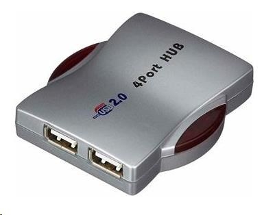 USB 2.0 HUB 4 porty, externí bez napájení - USB 2.0, 1.1 kompatibilní - přenos rychlostmi 1.5Mbps/12Mbps/480Mbps - napájení ze sběrnice (nepotřebuje napájecí adaptér) - hot plug (připojování bez restartu PC) - overcurent detekce a prevence proti přetížení zařízení - včetně USB kabelu 1m - LED signaliazce stavu - 4 porty pro připojení zařízení - až 127 zařízení do kaskády Kompaktní USB HUB vhodný například k notebooku nebo stolnímu PC pro rozšíření počtu USB 2.0 portů. Pěkný design, stříbrný kryt, porty prakticky umístěné z obou stran pro lepší připojení periferií. Baleno v blistru se závěsným systémem..