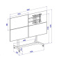 Podlahový pojízdný televizní stojan na 4 obrazovky 43" - 55", podstava 1634x725 mm, výška 1903 mm, VESA 150x150 až 400x400, nosnost 160 kg.