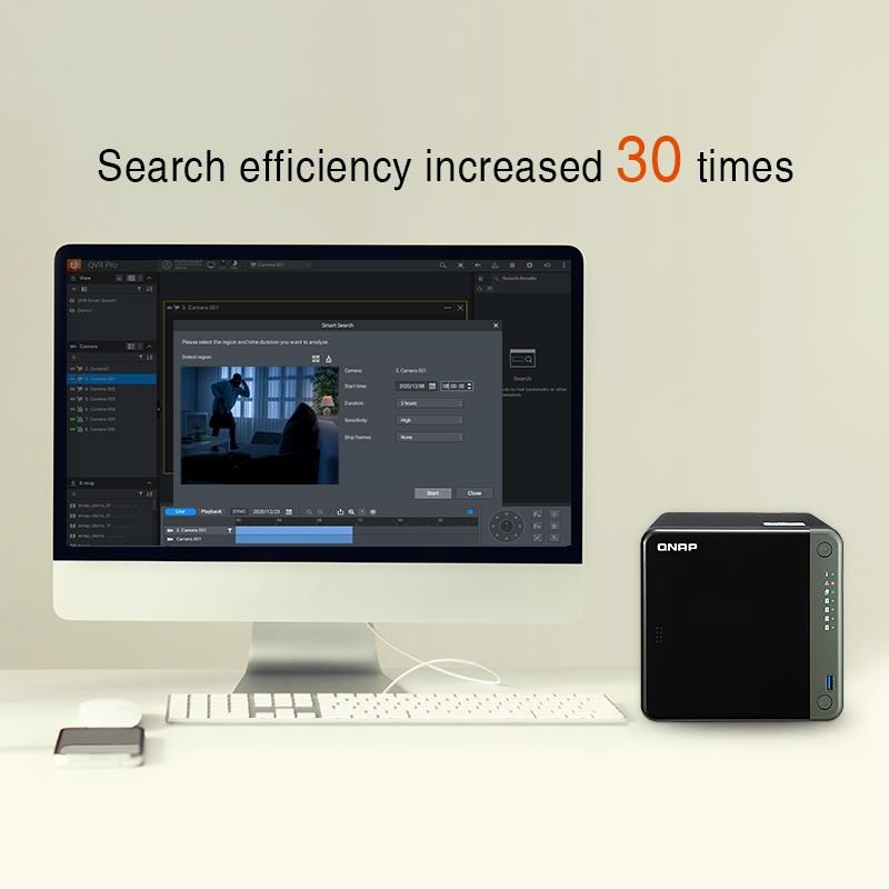 Licence QVR AI Pack vašemu NAS poskytuje QVR Smart Search (vyhledávání videí) a QVR Smart Client (výstup HDMI). Záznamy událostí můžete vyhledávat v časovém období a detekční oblasti určeným v rozhraní QVR Smart Client nebo QVR Pro Client. Místo ručního vyhledávání v událostech videí za celý den vám QVR Smart Search pomáhá efektivně a přesně prohledávat stovky hodin videozáznamů ze stovek kamer a najít konkrétní události. QVR Smart Search Vyhledávání videí na bázi AI v QVR Smart Search může běžet přímo na dozorovacím serveru bez ovlivnění výkonu systému. Je vybaven detekcí pohybu na videozáznamech dotazováním v rámci konkrétního času, oblasti a citlivosti. QVR Smart Client QVR Smart Client umožňuje uživatelům NAS s výstupem HDMI přímo sledovat dozorovací záběry připojením NAS k displeji HDMI. Nejsou potřeba žádné samostatné počítače. Lze také použít Smart Search v QVR Smart Client a snadno zobrazit výsledky hledání na časové ose.