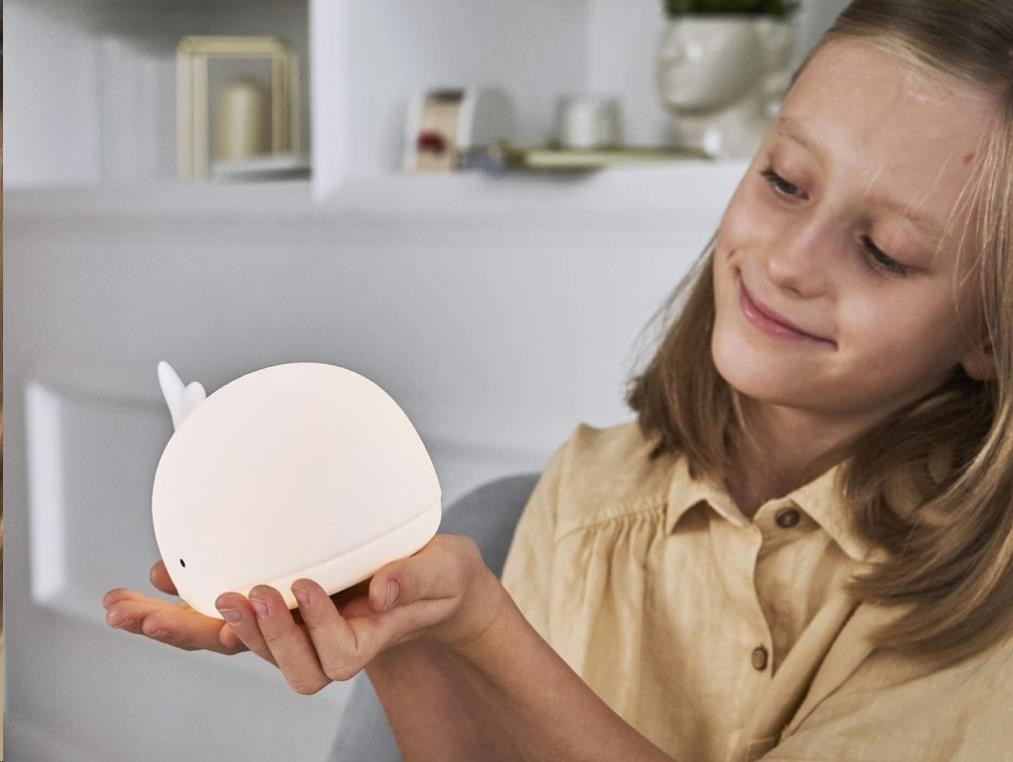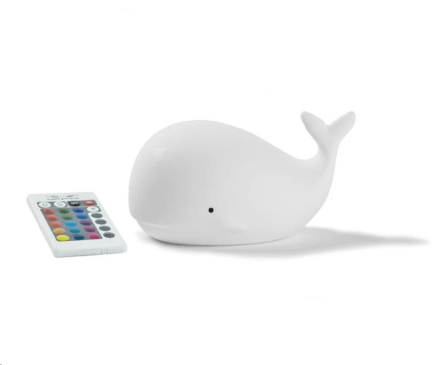 Dětská lampička v podobě mořského velikána je ideální první lampičkou pro vaši holčičku i chlapce. Roztomilou a měkkou velrybu si děti okamžitě zamiluj a jistě se stane součástí jejich každodenního usínacího ceremoniálu. Ovládání lampičky je jednouché a zvládnou je i děti samy. Poklepem nebo pomocí dálkového ovládání lampičku vypnou, zapnou, změní barvu nebo intenzitu světla.