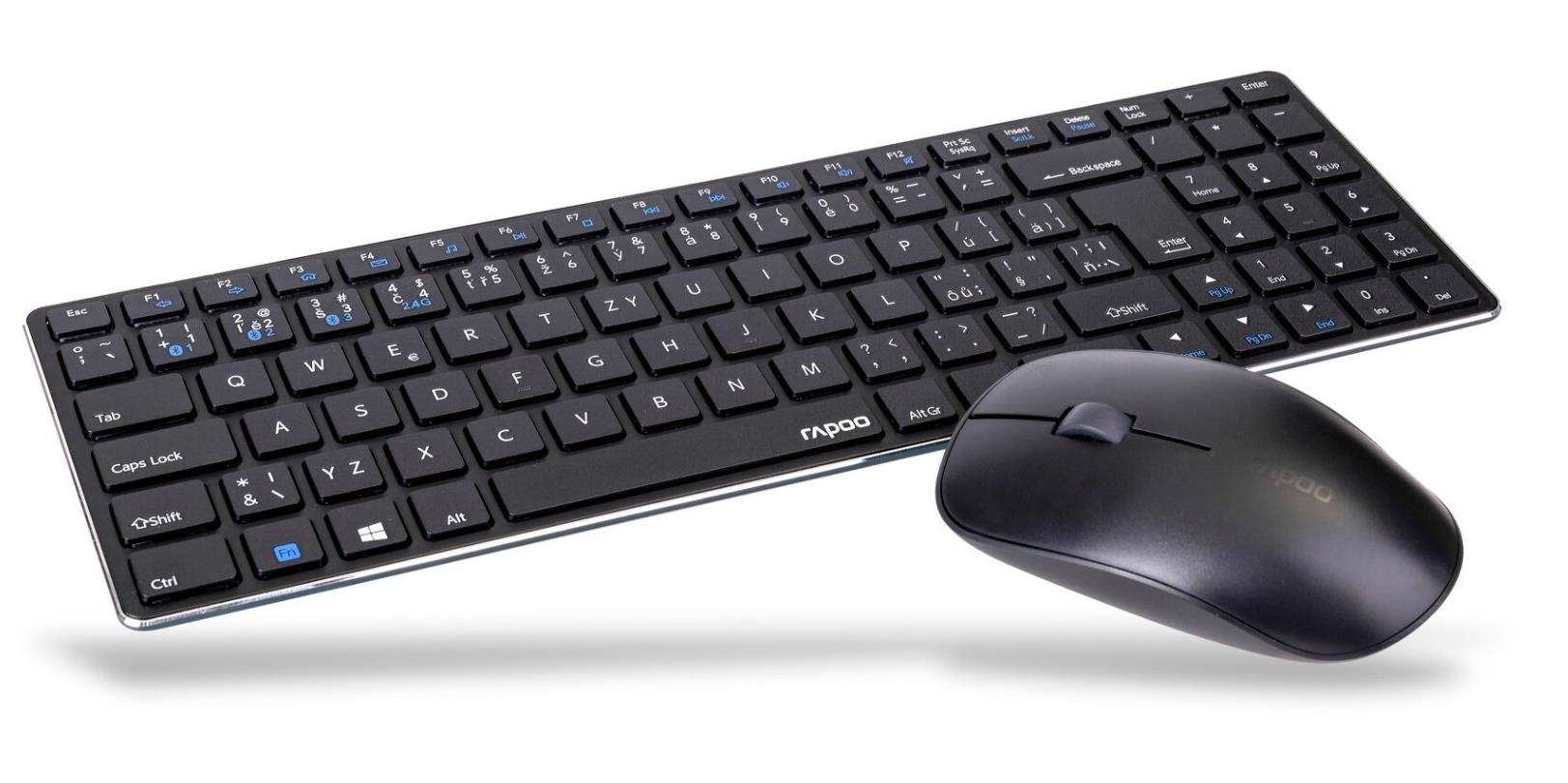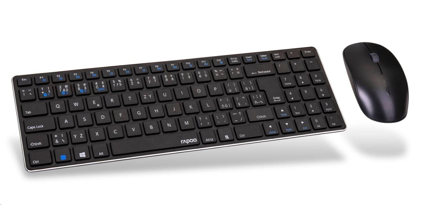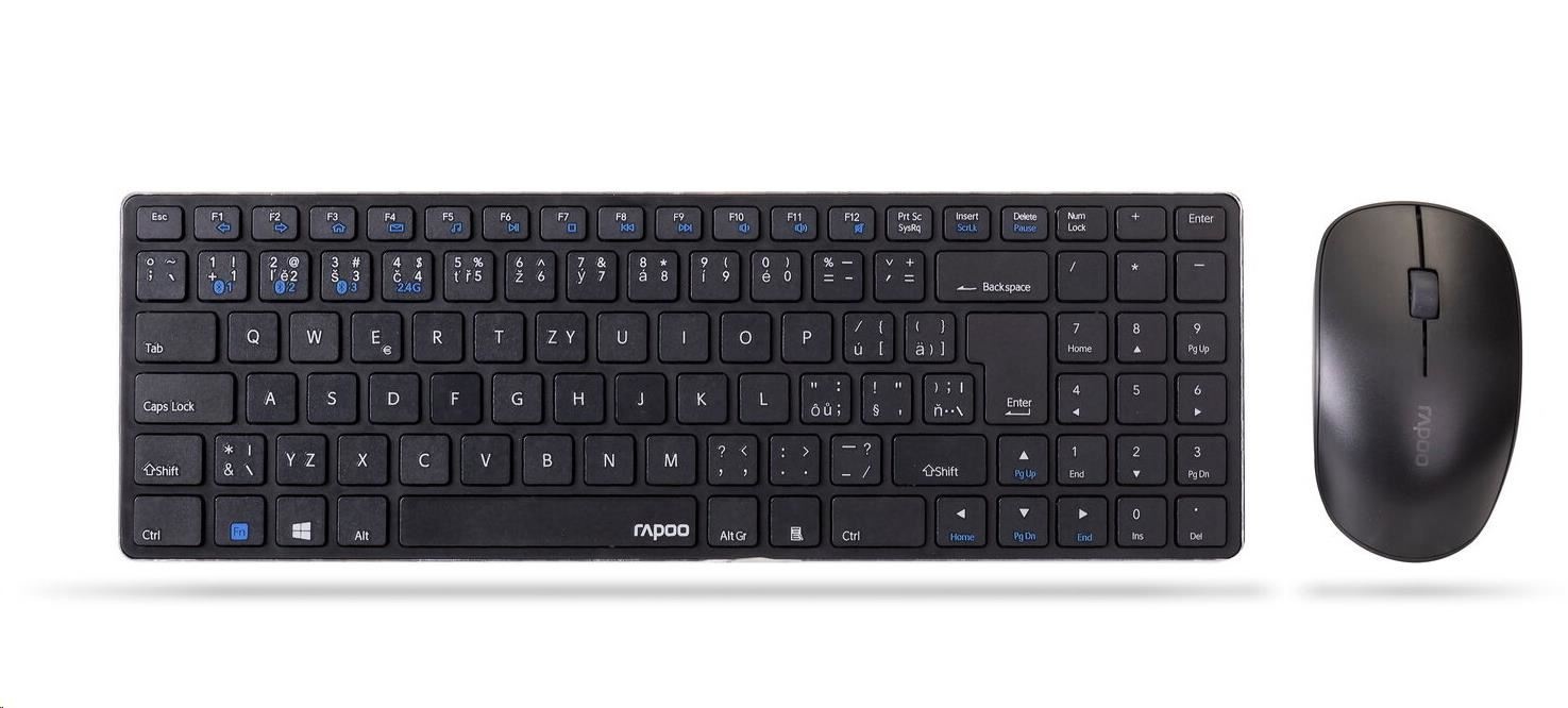 RAPOO set klávesnice+myš 9300M, Wireless Multi-Mode Slim Mouse and Ultra-Slim Keyboard, černá