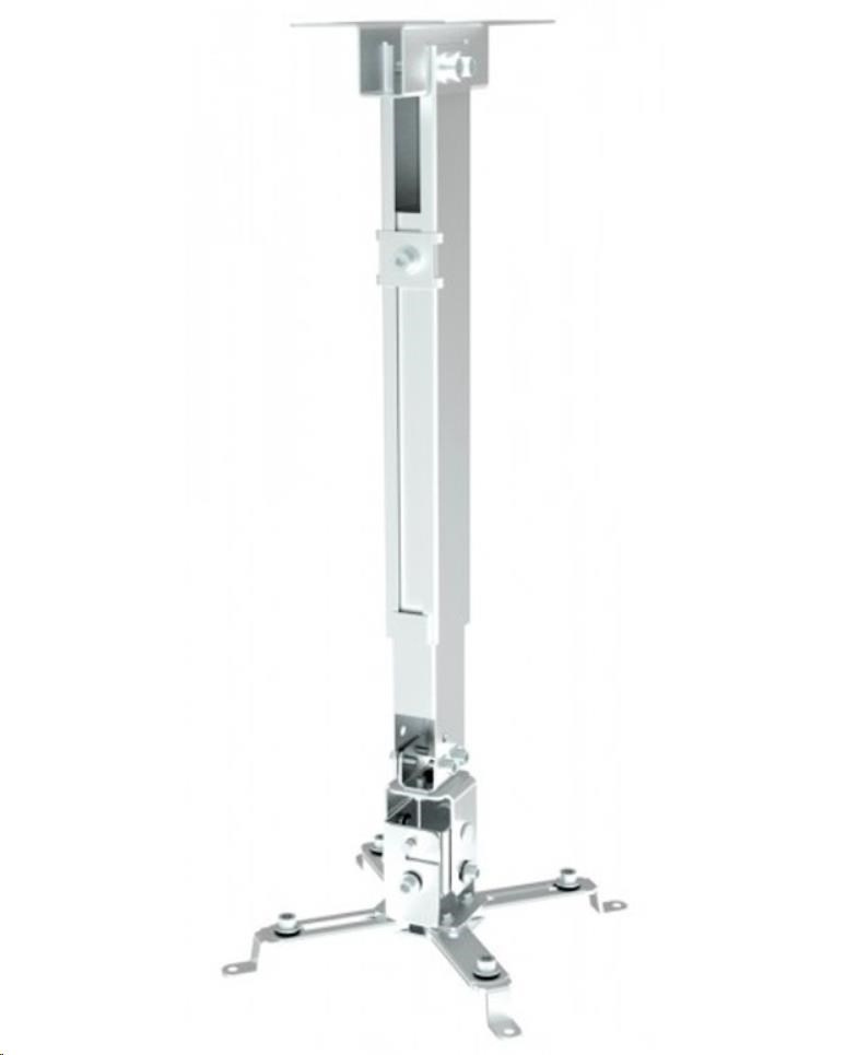 Stropní a nástěnný držák na dataprojektory - vzdálenost od stropu 43-65cm nebo stěny 35-56cm, přístroj nelze otáčet, lze naklonit +/- 8° bočně a +/- 15° ve směru, maximální zatížení 20kg, bílý. Univerzální systém uchycení dataprojektorů (rozsah 22,5-31,5 cm)..