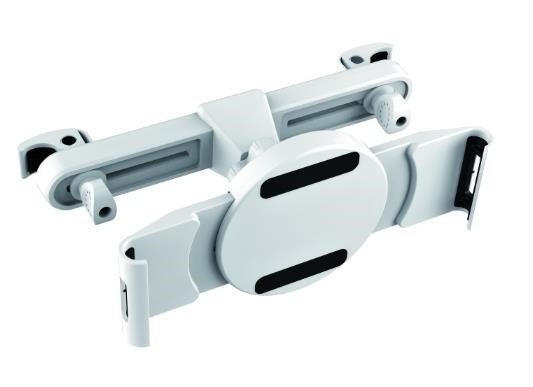 Držák pro tablety 7-11" v horizontální i vertikální poloze do auta pod opěrku hlavy. Určeno pro pasažery na zadním sedadle. Fixace ze dvou stran, otáčení tabletu o 360°, nastavitelná šíře uchycení 45-225mm, plastové provedení, bílý..
