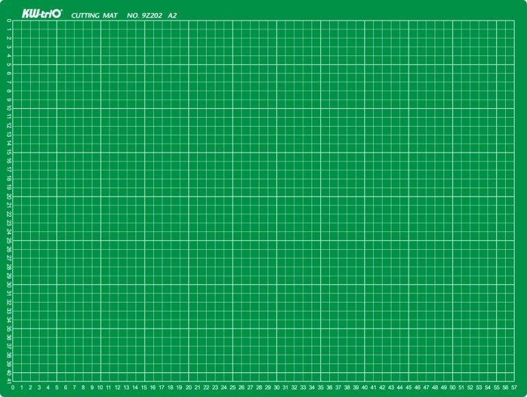 Řezací podložka pro formát A2. Rozměry 45×60 cm. Slouží jako pevný podklad pro řezání odlamovacím nebo rotačním nožem. Podložka o tloušťce 3 mm je vyrobena ze tří vrstev materiálu, má tuhé neproříznutelné jádro. Po projetí nože se se její povrch opětovně „zacelí“. Měkká povrchová vrstva podložky zároveň chrání ostrost nože. Provedení zelená, s antireflexním matným povrchem, tisk základním rastrem s měřítkem. Je vhodná také jako podložka pod počítačovou myš, nebo podložka pro razítkování..