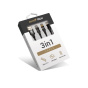 Kabel podporuje přenosovou rychlost až 480Mbps a disponuje výstupním proudem 1A. Délka kabelu 1.2m je dostatečná pro pohodlné používání. Kvalitní nylonové opletení je odolnější vůči ohybům a dalšímu poškození oproti klasickým silikonovým kabelům a tím zaručí dlouhou životnost. Kabel lze sepnout poutkem na suchý zip do skladnější podoby na cesty. Díky své univerzalitě je možné najednou propojit širokou škálu mobilních zařízení při nabíjení pouze z jednoho adaptéru.