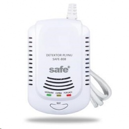 Detektor je vybaven tlačítkem TEST s funkcí, která slouží k umělému simulování přítomnosti plynu a umožňuje ověření provozuschopnosti vnitřních obvodů prostřednictvím automatického monitorovacího systému účinnosti.Hlásič plynu SAFE - 808 se ideálně hodí pro detekci úniku plynu ze všech domácích plynových spotřebičů a plynových kotlů. Detekuje všechny hořlavé plyny běžně se vyskytující v domácnostech.