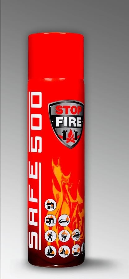 Univerzální hasicí sprej SAFE 500 certifikovaný na hašení požárů A, B, C, E (1000V), F. Je primárně určen k hašení začínajících požárů v bytech, kuchyních, garážích, automobilech, kancelářích, chatách. Obsahuje nemrznoucí složku!.