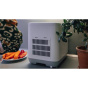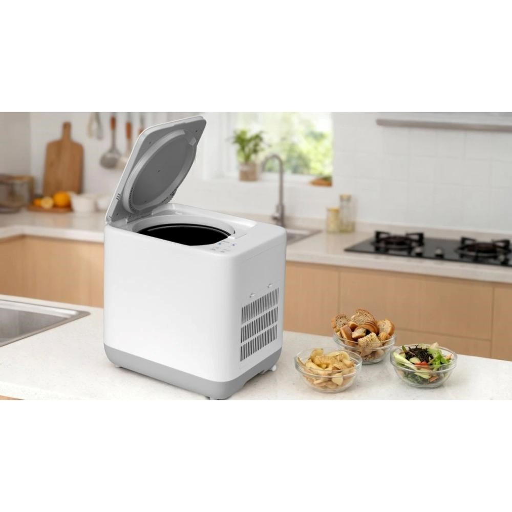 Vzhledem k rozměrům 33 × 25,7 × 33,4 cm (při hmotnosti 7,8 kg) se zařízení vejde prakticky do každé kuchyně, aniž by překáželo při běžných činnostech. Jeho hlučnost je jen 50 dB, což je srovnatelné třeba s běžným ruchem v kanceláři – ekologické zpracování bioodpadu tedy neruší sousedy ani spící děti.