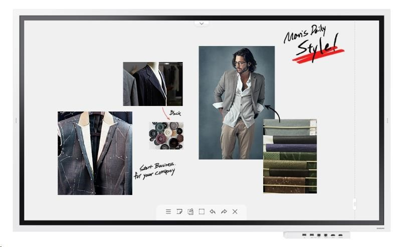 Uživatelské rozhraní obrazovky Samsung Flip bylo navrženo pro snadnou navigaci a rychlý přístup ke všem důležitým funkcím. Ovládací prvky i snadné prohlížení vytvořených dokumentů máte vždy na dosah. Náhled obsahu i možnost jeho rychlé úpravy před publikováním jsou samozřejmostí.