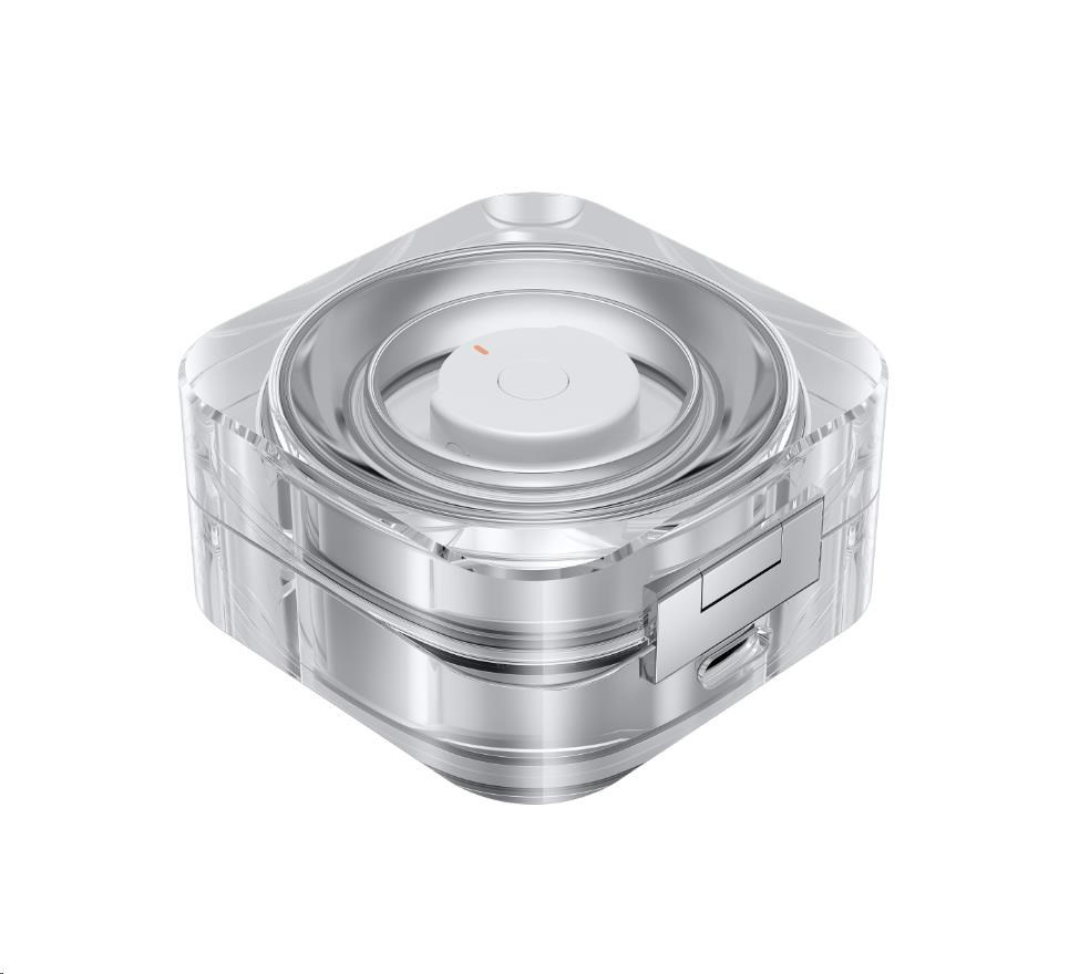 Na prsten Galaxy Ring je krásný pohled i při jeho vložení do křišťálově čistého nabíjecího pouzdra. Jemná záře světla kolem víceúčelového tlačítka navíc šikovně indikuje úroveň nabití baterie. Nabíjecí pouzdro lze nabíjet i bezdrátově, takže když jsi zrovna na cestách, stačí prsten Galaxy Ring bezpečně umístit do pouzdra a pro snadné doplnění energie jej položit na bezdrátovou nabíjecí podložku.
