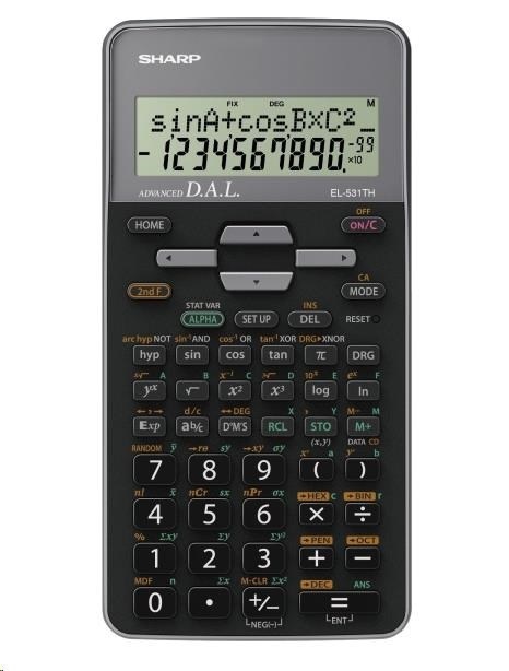 Vědecký kalkulátor EL-531TH obsahuje 273 matematických funkcí a je vhodný zejména pro studenty středních škol. Přehledný 2řádkový displej umožňuje procházení a editaci předchozích výpočtů, pevný plastový kryt chrání kalkulátor před poškrábáním a pády.