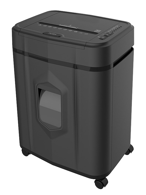 Automatický skartovací stroj atraktivního designu s kapacitou zásobníku na 140 listů pro střední kanceláře. Vhodný pro skartaci dokumentů o šířce 220 mm. Stroj je standardně vybaven automatickým systémem start/stop, zpětným chodem, tepelnou pojistkou motoru proti přehřátí, signalizací přeplněného koše. Příležitostně lze skartovat sešívací sponky a kreditní karty. Šíře vstupu: 220 mm Velikost řezu: 2 x 12 mm Kapacita při manuálním vložení, papír DIN A4, 70 g/m2: 10 Kapacita automatického zásobníku: 140 listů Stupeň utajení dle nové DIN 66399: P-5 Řezný mechanismus skartuje CD, kreditní karty a sponky: ne Rychlost: 0,05 m/s Velikost koše: 19 litrů Hlučnost motoru: < 55 dB Připojovací parametry, Watt / Volt/Hz ( střídavý proud ): 500 W /230 / 50 / 1~ Délka nepřetržité skartace: 60 min Tepelná pojistka motoru proti přehřátí: dvojitá Automatický start/stop: ano Aut. zpětný chod / aut. vypnutí při ucpaném koši: ano Elektronické zabezpečení dveří: elektronické s LED kontrolkou Pojezdová kolečka: ano Rozměry, mm ( v x š x h ): 555 x 365 x 265 Hmotnost: 12,7 kg.