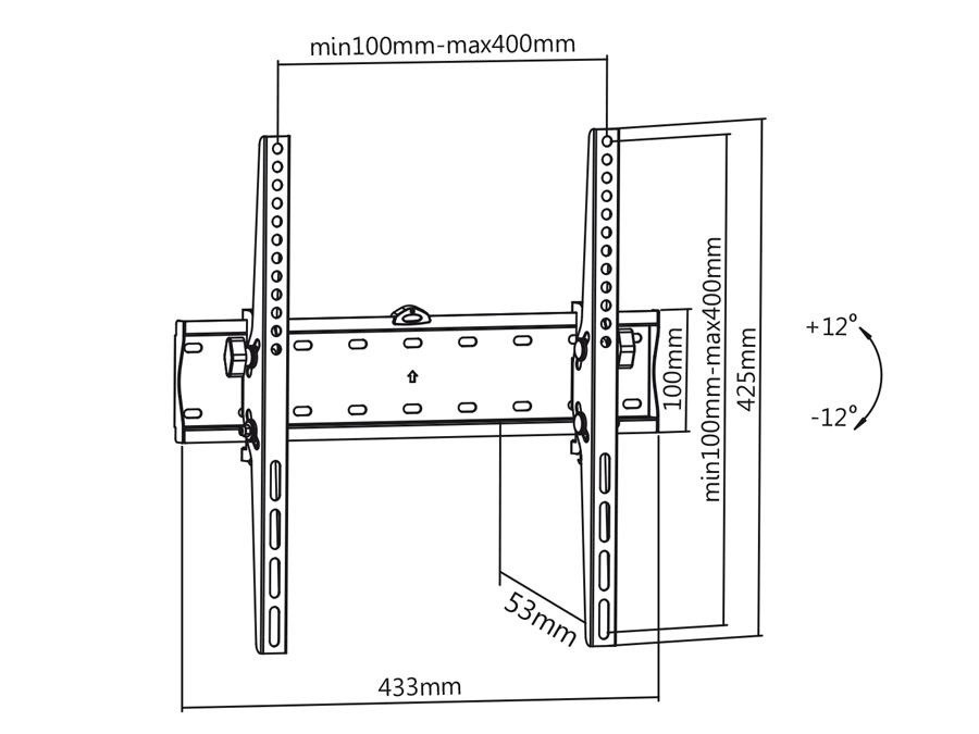 Sklápěcí televizní držák Fiber Mounts M6C65 Nástěnný držák pro zavěšení Tv 32-60" a regulaci náklonu +/- 12°, vzdálenost od zdi 53mm, VESA standardy 75x75 až 400x400, nosnost 40kg Hledáte kvalitní naklápěcí držák pro zavěšení televizoru s úhlopříčkou 32" až 60" ? Chcete držák velmi dobré kvality za velmi příznivou cenu? V tom případě Vám rádi doporučíme právě tento držák, který má velmi pevnou konstrukci s nosností 40kg, podporuje VESA standardy 75x75 až 400x400, vzdáleností od zdi 53mm a možností náklápění Tv od +12° až do -12°. Pro snadnou a rychlou montáž je držák osazen vodováhou a je dodávám včetně montážního materiálu. Barevné provedení černé. Záruka 5 let. Naklápěcí nástěnný držák na televizi Fiber Mounts M6C65 Technické údaje: nosnost 40kg podporuje VESA standard 100x100 až 400x400 doporučujeme na televizory s úhlopříčkou 32" až 60" odsazení obrazovky od zdi 53mm náklon +12° až -12° snadné zajištění sklonu v požadované poloze konstrukce je osazena vodováhou pro rychlejší a snadnější instalaci dodáváme včetně montážního materiálu (hmoždinky, vruty, šrouby) bezpečná velmi pevná konstrukce z oceli snadná a rychlá montáž barva černá záruka 5 let Držák na televizi s naklápěním Fiber Mounts M6C65 Držák na televize M6C65 podporuje VESA standardy: VESA 100x100 VESA 200x100 a 100x200 VESA 200x200 VESA 300x200 a 200x300 VESA 300x300 VESA 400x200 a 200x400 VESA 400x300 a 300x400 VESA 400x400 Nástěnný sklopný Tv držák M6C65 je vhodný pro zavěšení veškerých značek, typů i velikostí televizí, které podporují kterýkoliv z výše uvedených VESA standardů a jejichž hmotnost není vyšší jak 40kg. Samotná montáž držáku je stěnu je velmi snadná a zvládně ji i naprostý laik..