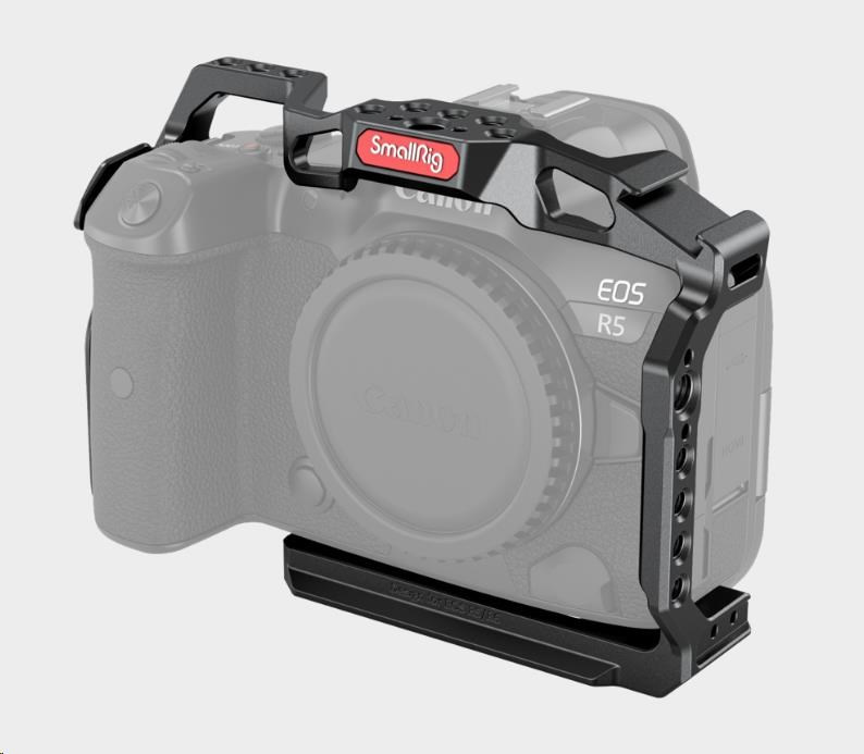 Plně tvarovaná klec pro fotoaparáty Canon R5, R6 a R5 C zachovává přístup k ovládacím prvkům fotoaparátu a nabízí řadu možností montáže.