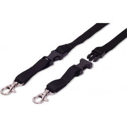 Plochá šňůrka s karabinkou černé barvy. Šířka sňůrky 20 mm, délka 90 cm..