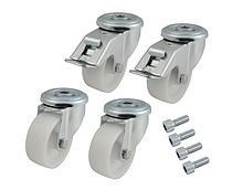 V případě nutnosti pohybu instalovaného rozvaděče jsou k dispozici sady pojezdových koleček (set 4 kusů). Kolečka jsou konstruována pro nosnost maximálně 600 kg staticky a umožňují pomalý pohyb po rovné podložce. V sadě jsou obsažena 2 kolečka pevná a 2 kolečka otočná s brzdou. Rozvaděč s namontovanými kolečky zvýší svou výšku o 110 mm. Kombinovat kolečka s nivelačními nožkami nelze. Tyto kolečka jsou připraveny pouze pro instalaci na rozvaděče dodávané naší společností