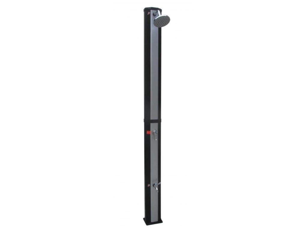 Velmi oblíbená solární sprcha s velkou sprchovací hlavicí, která zajišťuje příjemné sprchování připomínající lehký letní deštík. Sprcha je vyrobena z kvalitního PVC odolného vůči UV záření a díky přední části imitují nerez působí luxusním dojmem. Má XL zásobník o objemu 35 l, je vysoká 217 cm a je vybavena praktickým kohoutkem na oplach nohou. Připojení na přívod vody je velmi jednoduché pomocí hadicové rychlospojky (součástí balení). Sprcha je dvoudílná, takže ji lze lehce složit a převézt na jiné místo.