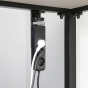 zásuvky 230V schované pod stolem, USB nabíječka a centrální vypínač přístupné shora
