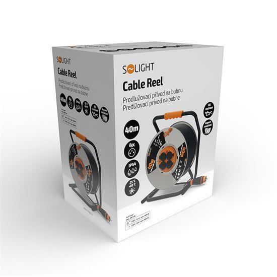 Solight prodlužovací přívod - na kovovém bubnu, 4 zásuvky, 40m kabel guma-neopren, 3x 2,5mm2, IP44