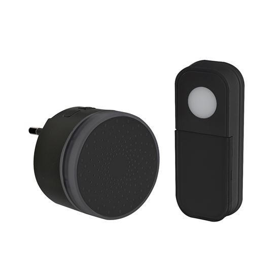 Solight bezdrátový mini zvonek, do zásuvky, 180m, černý, learning code
