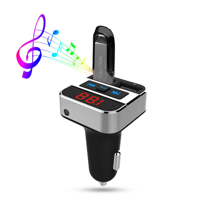 - bluetooth FM transmitter pro přehrání hudby z multimediálních zařízení, mp3 přehrávač, autonabíječka + handsfree