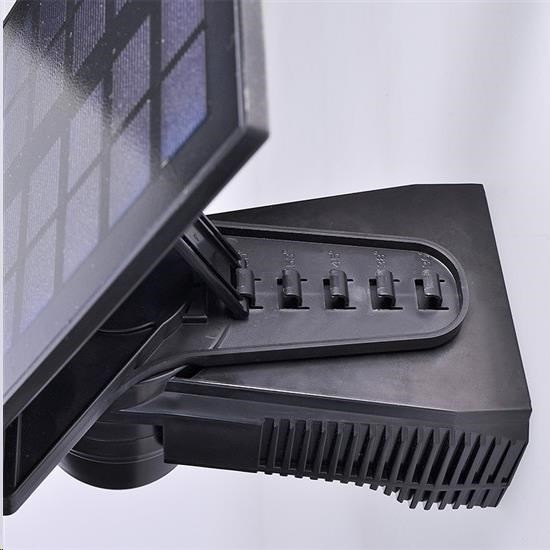 LED osvětlení se solárním panelem a nastavitelným světelným a pohybovým čidlem světelné reflektory i solární panel lze horizontálně i vertikálně natáčet a naklápět vhodné pro osvětlení venkovních částí prostor bez přívodu elektrické energie (parkovací stání, pergoly, kůlny, zádomí, vstupní branky apod.) příkon: 8W světelný tok: 600lm teplota světla (chromatičnosti): 4000K (neutrální bílá) nastavení času svícení: cca 10s-60sec nastavení světelné citlivosti: 10-1000lux úhel detekce senzoru: 110° detekční vzdálenosti: cca 8m doba nabíjení baterie solárním panelem: cca 8 hodin (v závislosti na světelných podmínkách) čistá doba svícení: max. 1hod. baterie:1x Li-Ion 3,7V 2000mAh vypínač: vypnuto (OFF) / automatické spínání (AUTO) barva: černá.