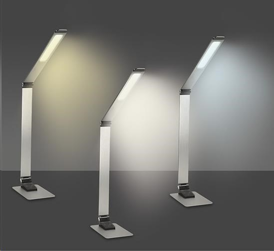 Solight LED stolní lampička stmívatelná, 11W, změna chromatičnosti, broušený hliník, stříbrná