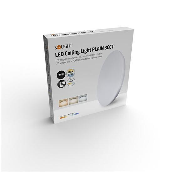 Solight LED stropní světlo Plain, 3CCT, 24W, 1920lm, 3000K, 4000K, 6000K, kulaté, 38cm
