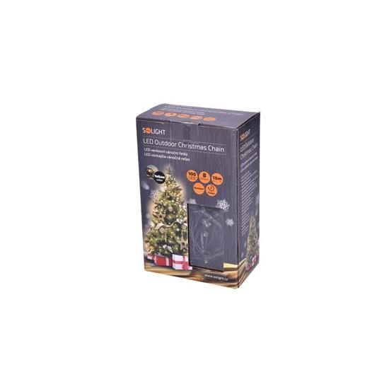 Solight LED venkovní vánoční řetěz, 100 LED, 10m, přívod 3m, 8 funkcí, časovač, IP44, teplá bílá