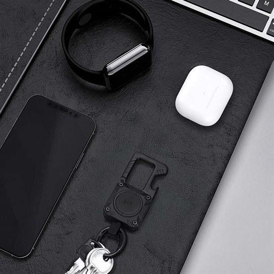 Díky této stylové kovové klíčence budete mít své klíče, batoh nebo jiné cennosti vždy bezpečně pod dohledem. Klíčenka v sobě spojuje Bluetooth lokátor kompatibilní s Apple Find My a praktický otvírák na lahve. Styl, bezpečnost a funkčnost v jednom!.