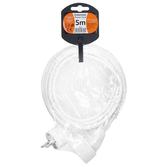Kompaktní bílý prodlužovací kabel s délkou 5 metrů a jednou zásuvkou je ideální pro jednoduché prodloužení elektrické energie v domácnosti, kanceláři nebo dílně. Vhodný pro připojení samostatného zařízení mimo dosah pevné zásuvky.