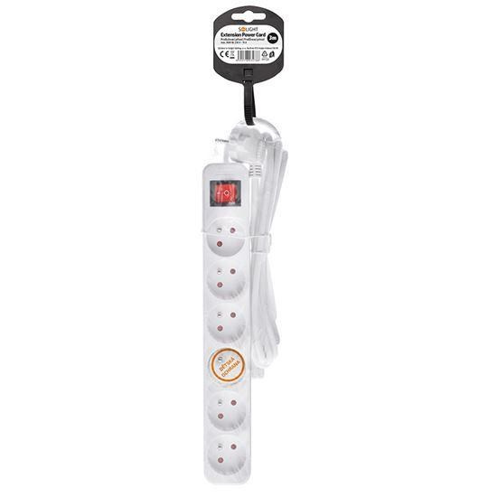 Praktický bílý prodlužovací kabel s délkou 3 metry a šesti zásuvkami umožní přivést elektrickou energii tam, kde není k dispozici pevná zásuvka. Podsvětlený vypínač umožňuje pohodlné ovládání všech připojených zařízení. Ideální pro domácí i kancelářské využití.