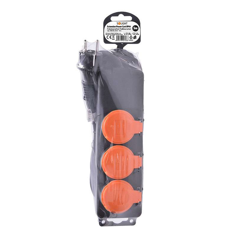 Solight prodlužovací přívod IP44, 3 zásuvky, gumový kabel, venkovní, 5m