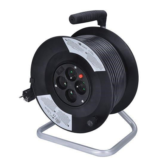 Solight prodlužovací přívod na bubnu, 4 zásuvky, 50m, černý kabel, 3x 1,5mm2