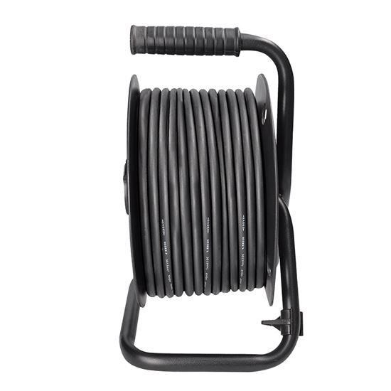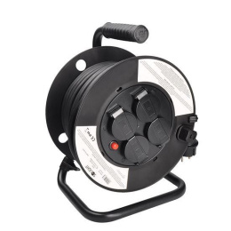 Gumový kabel typ H05RR-F 3G s vodiči o průřezu 3×1,5 mm2 je vhodný pro venkovní použití i vnitřní prostory. Buben je vybaven zásuvkami s dětskými pojistkami a tepelnou pojistkou, která zajišťuje bezpečnost při přetížení nebo neúplném odvinutí kabelu. Produkt splňuje stupeň krytí IP44, který zajišťuje ochranu proti stříkající vodě. Vhodný pro bezpečné a spolehlivé připojení stavebních, zahradních i méně náročných průmyslových zařízení.