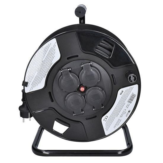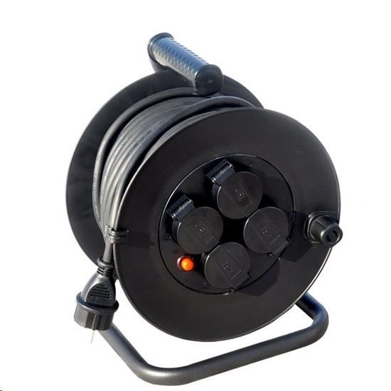 Solight prodlužovací přívod na bubnu, 4 zásuvky, venkovní, 50m gumový kabel, 3x 1,5mm2, IP44