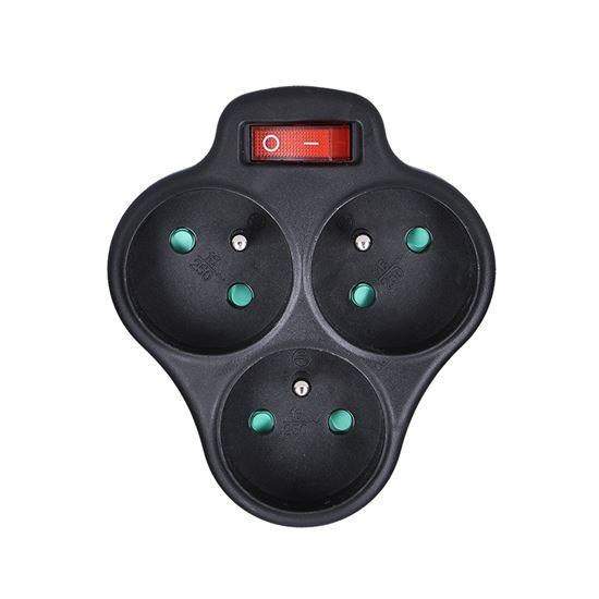 výstup 3 x 10A/230V =>max. 16A dětská pojistka barva: černá vypínač.