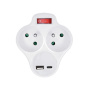 Solight rozbočka s USB A+C rychlonabíječkou 20W PD, 2 x 10A, bílá, vypínač